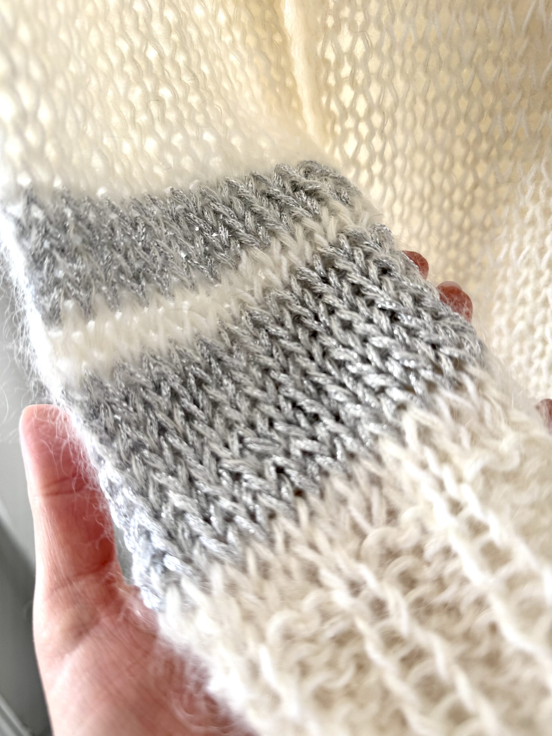 DLOUHÝ SVETR MOHER S HEDVÁBÍM STŘÍBRNÝ ÚSVIT