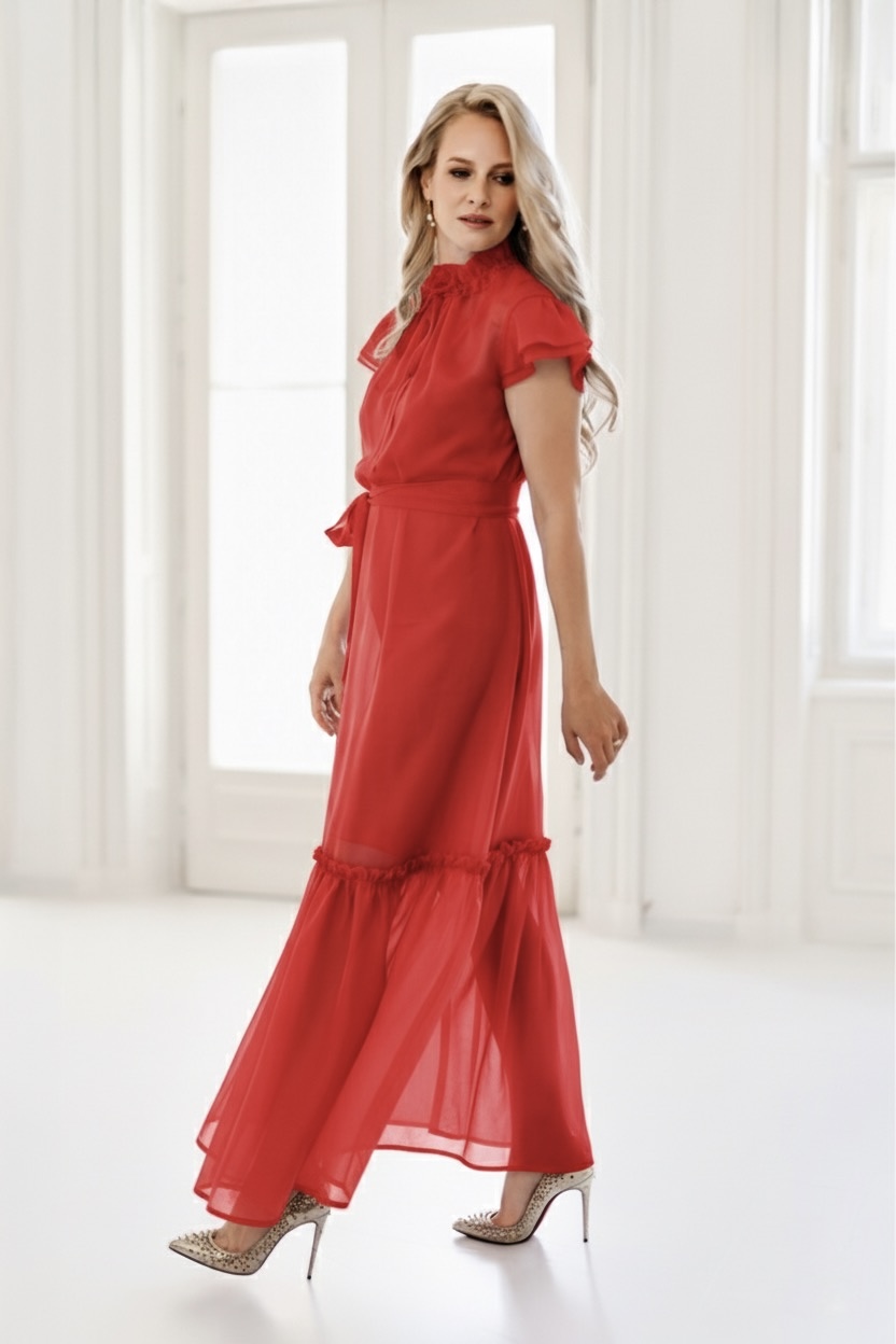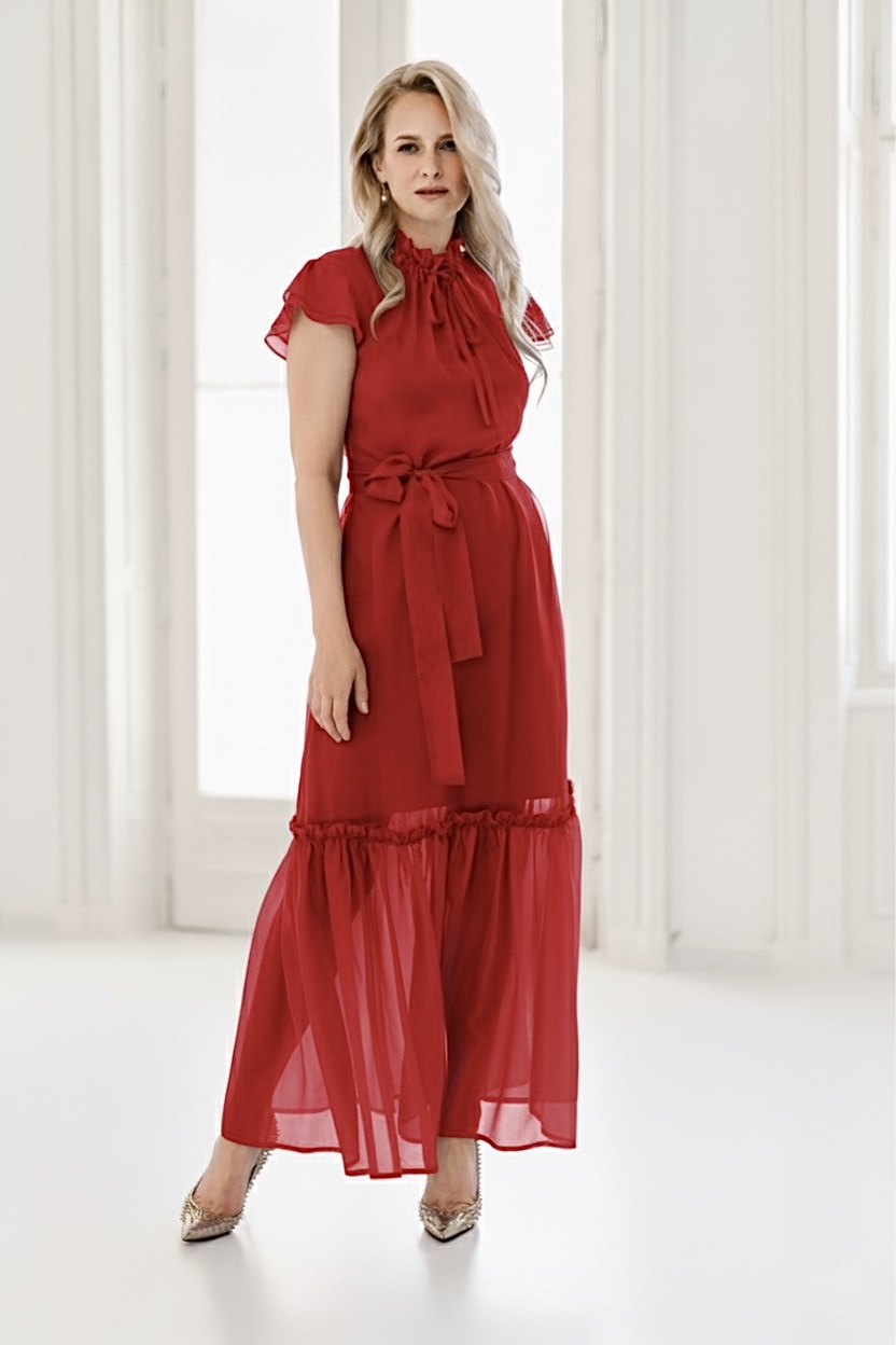 Nádherný odstín červené, která symbolizuje lásku, sílu, vášeň a odvahu, v šifonovém podání je velmi jemná a něžná.