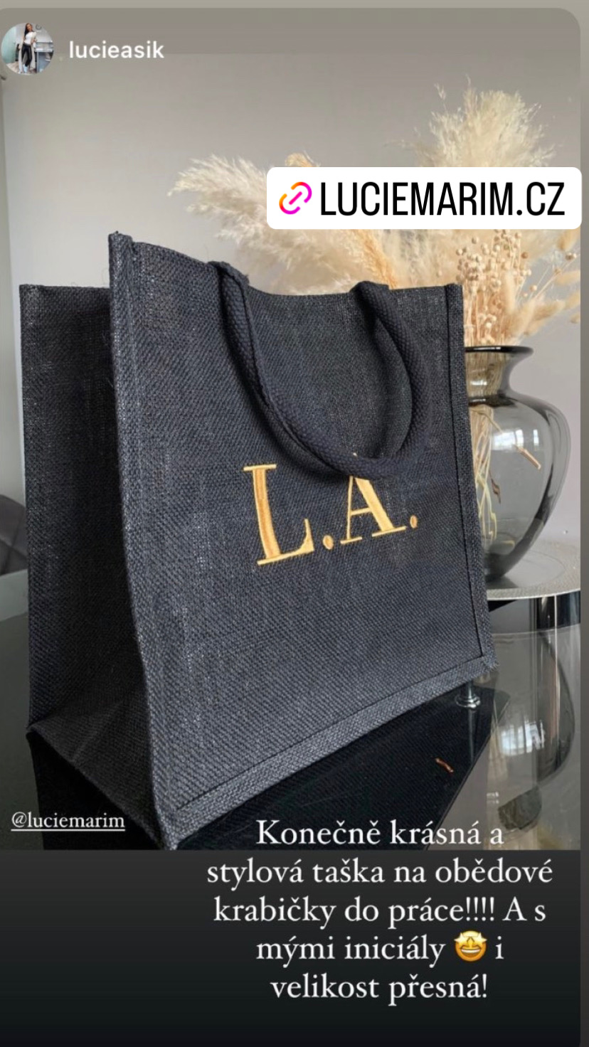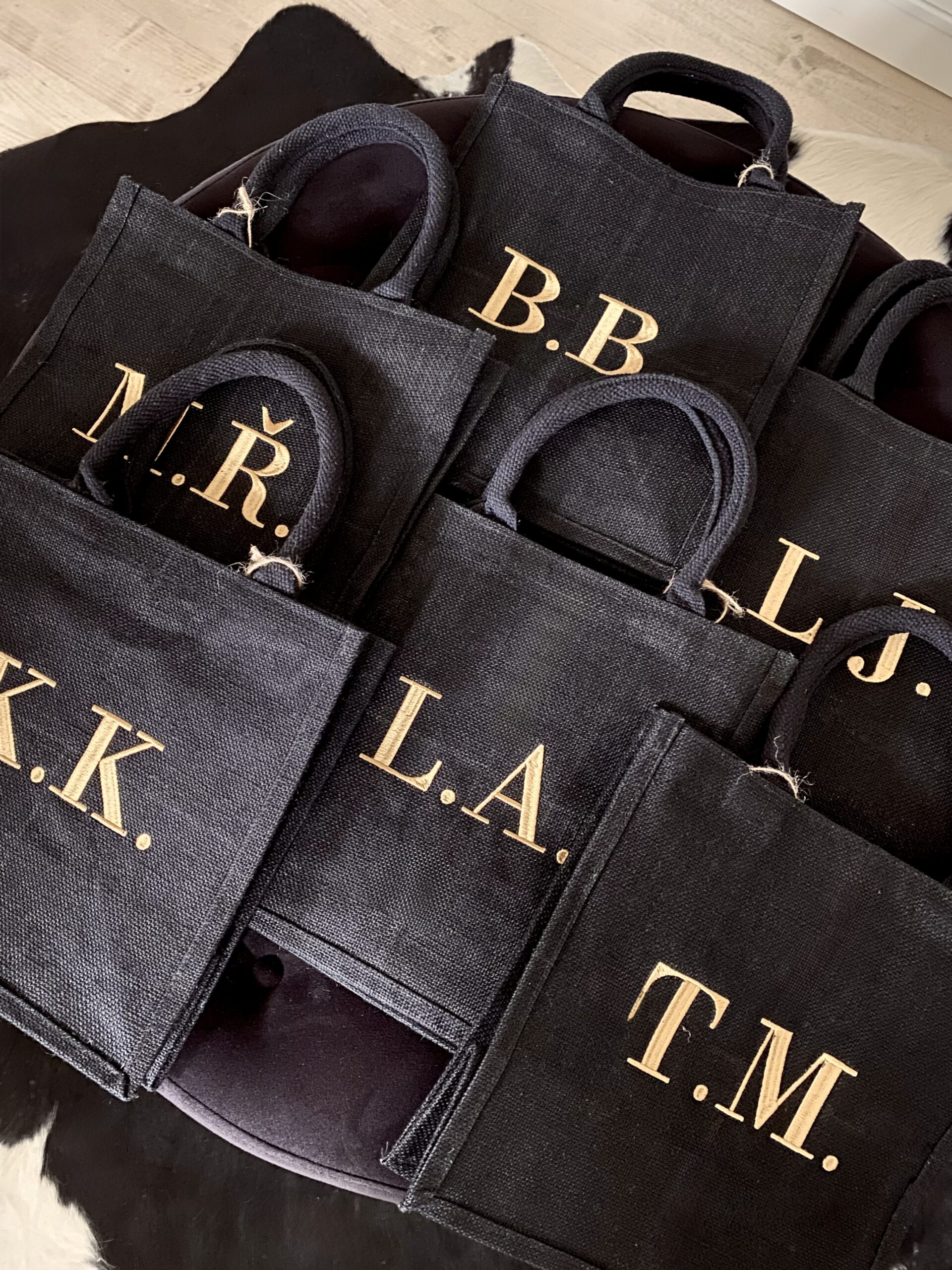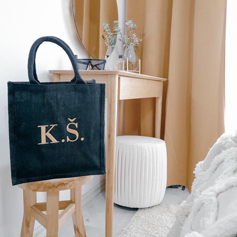 100 % jutová taška s vetkanými iniciály podle Vašeho přání, ať už Vašich nebo milované osoby, kterou chcete potěšit tímto praktickým dárkem