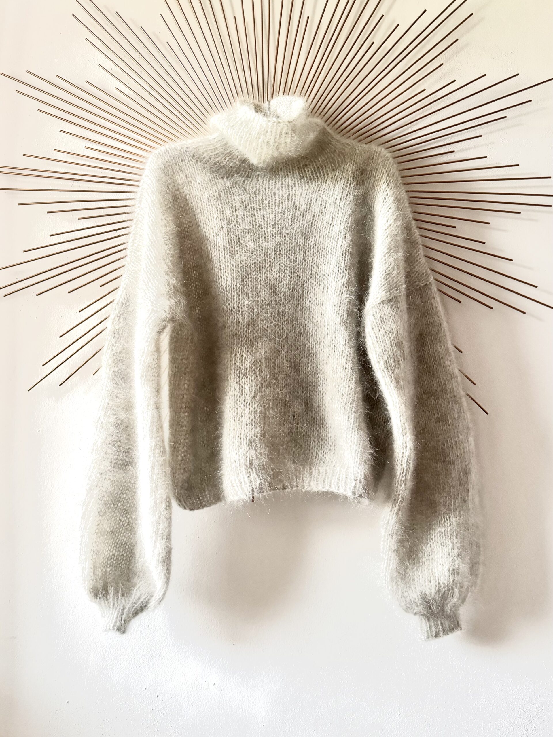 Tento svetýrek je opravdový dotek luxusu, nejkvalitnější dostupná mohérová vlna s příměsí pravého hedvábí, něžně spletena do drobných nadýchaných oček.